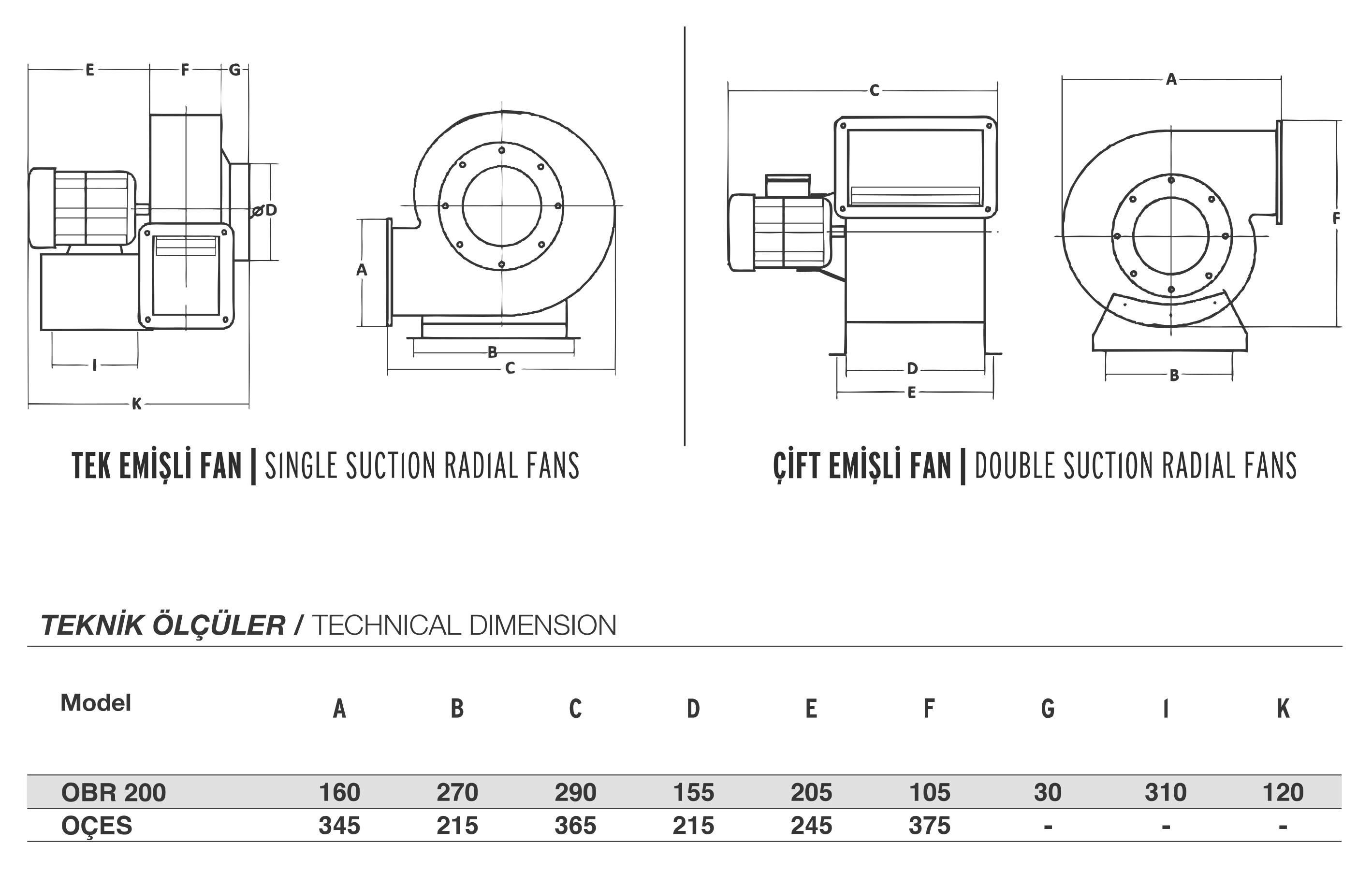 Fansan OBR-200-4K Sık Kanat Tek Emişli Radyal Fan 900 m3/h
