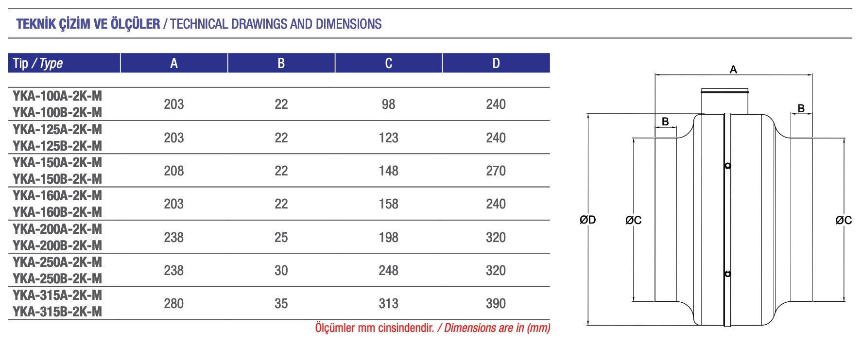 Ayas YKA-200B-2K-M YUVARLAK KANAL TİPİ RADYAL FAN