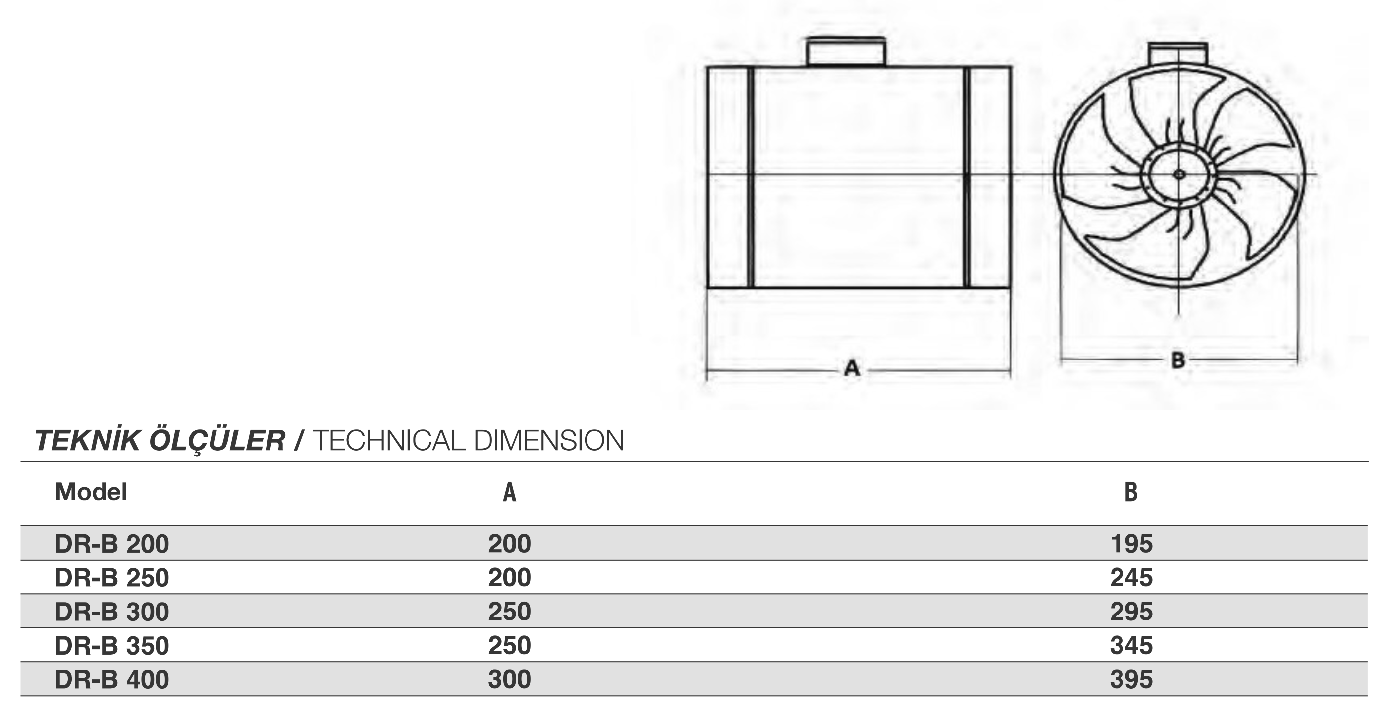 • DR-B serisi boru tipi aspiratörlerimiz; davlumbaz bacaları,havalandırma tesisatlarında ve yüksek hava debilerine ihtiyaç duyulan uygulamalar için idealdir.